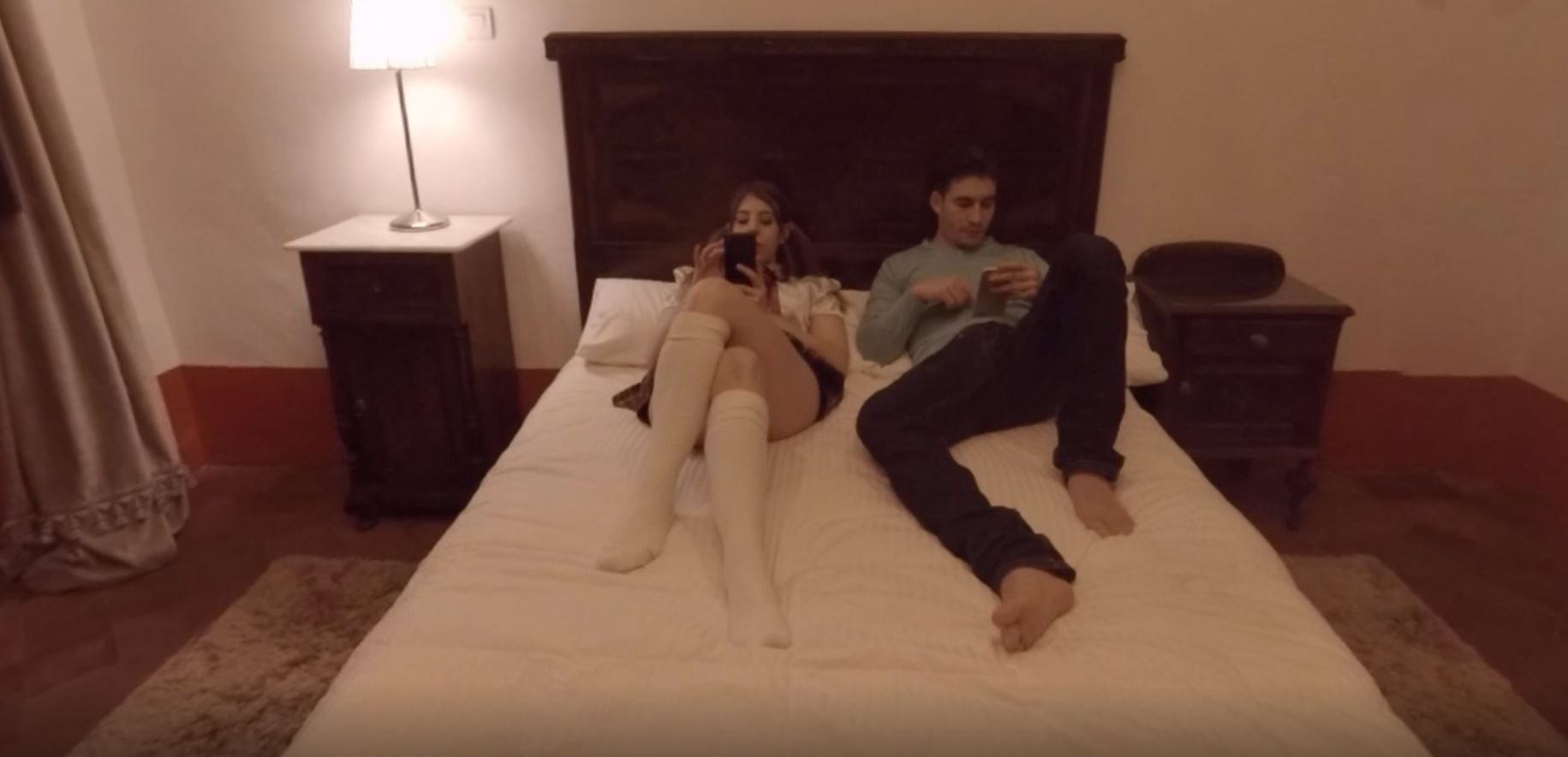 Two students are chilling on a bed after class but… alone in the room… things are getting hot! He begins to put her clothes off, she gets horny, he fingers her hard and they do bad things, very bad things! The teen hot babe gives him the best blowjob you can dream of after classes. What happens next? You’ll discover it in the next episode of High School Porn. For the moment, put your vr headset on and enjoy.